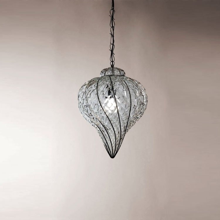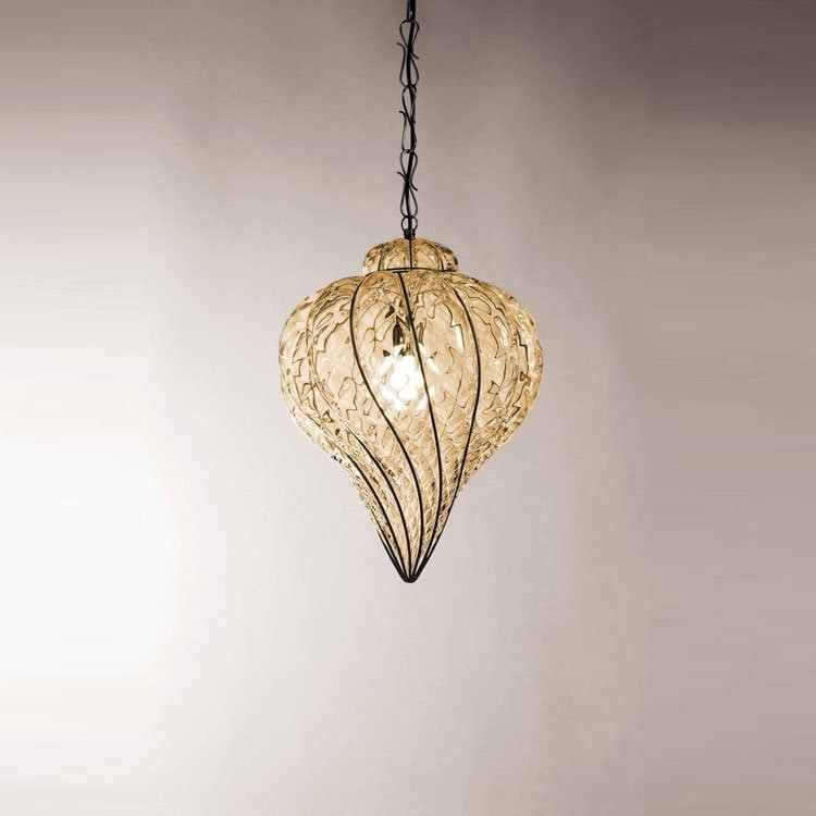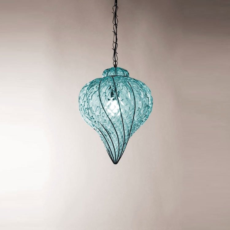Handgefertigte Lampe aus mundgeblasenem Glas, hergestellt mit den Techniken der alten Meister des Muranoglases.