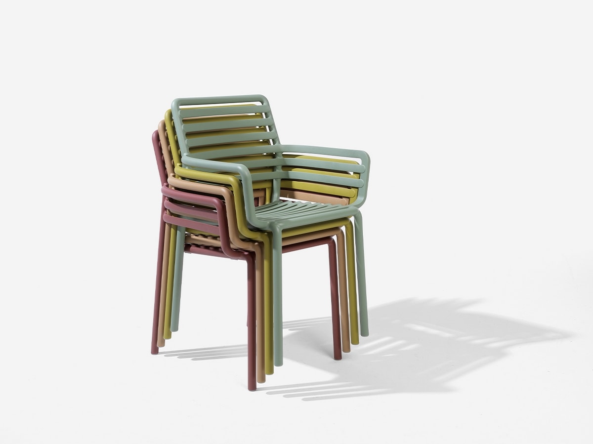 Der Sessel Doge P, der sich durch die Markensignatur aus Glasfaserharz auszeichnet, stellt eine zeitgemäße Neuinterpretation des Lamellenthemas dar. Dieser stilvolle Sitz bietet eine Kombination aus Manövrierfähigkeit, Stapelbarkeit, einfacher Reinigung und vollständiger Recyclingfähigkeit. Was den Sessel Doge P noch faszinierender macht, sind die neuen Farben wie Marsala, Cappuccino, Birne und Minze, die sich mit den anderen faszinierenden Tönen Agave, Tabak, Weiß und Anthrazit verbinden.
