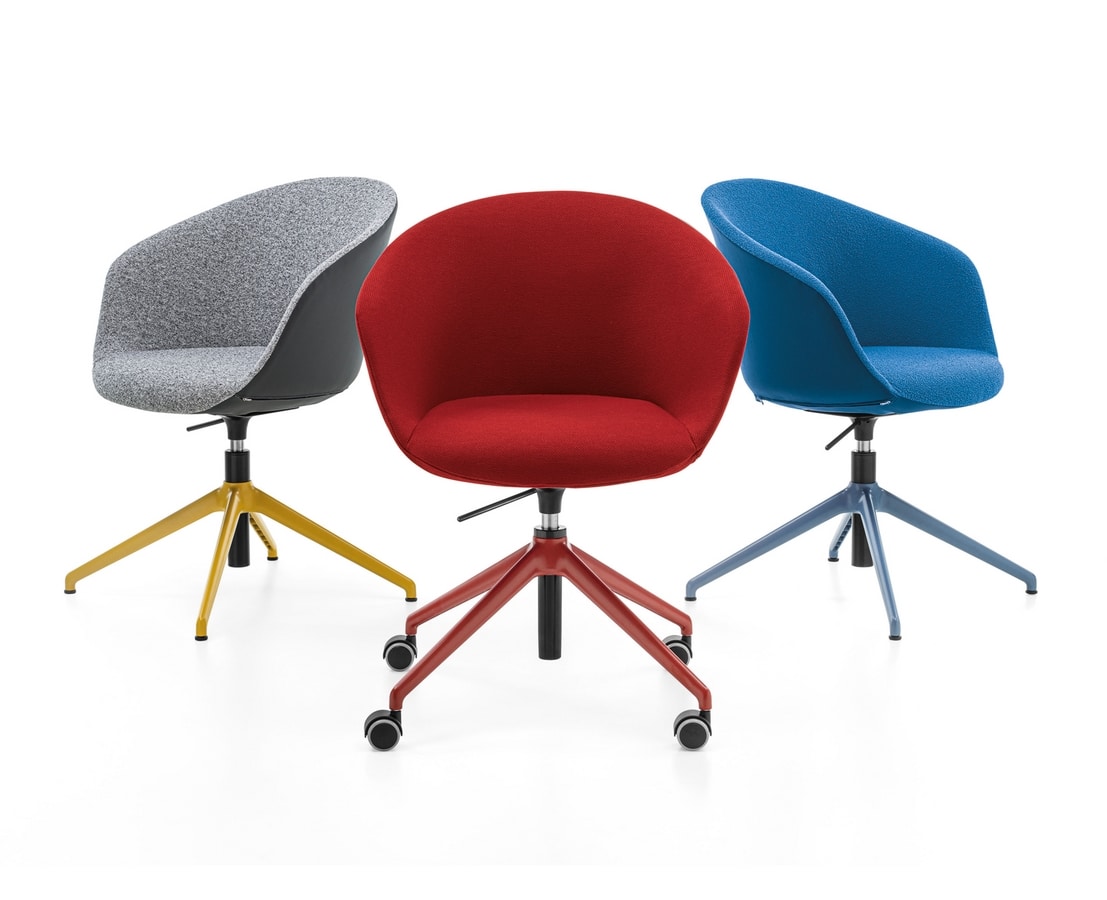 Diese rundum grüne Reihe ist so gestaltet, dass sie am Ende ihrer Lebensdauer vollständig demontiert werden kann. Jedes Element (Sitzschale und Gestelle) besitzt einen eigenen “grünen“ Wert. Die Gestellausführungen, fest oder drehbar, sind: Vierfußgestell aus massivem Buchenholz mit Metallrahmen (demontierbare Elemente), Vierfußgestell aus Stahl, Kufengestell aus Stahl-Rundrohr Ø 11 mm, Sternfuß aus Aluminium für Drehstuhl mit oder ohne Höhenverstellung, 4- oder 5-Stern-Fußkreuz mit Rädern oder Gleitern, Fußteller aus Edelstahl für Stuhl und Hocker, alle in mehreren Versionen erhältlich.