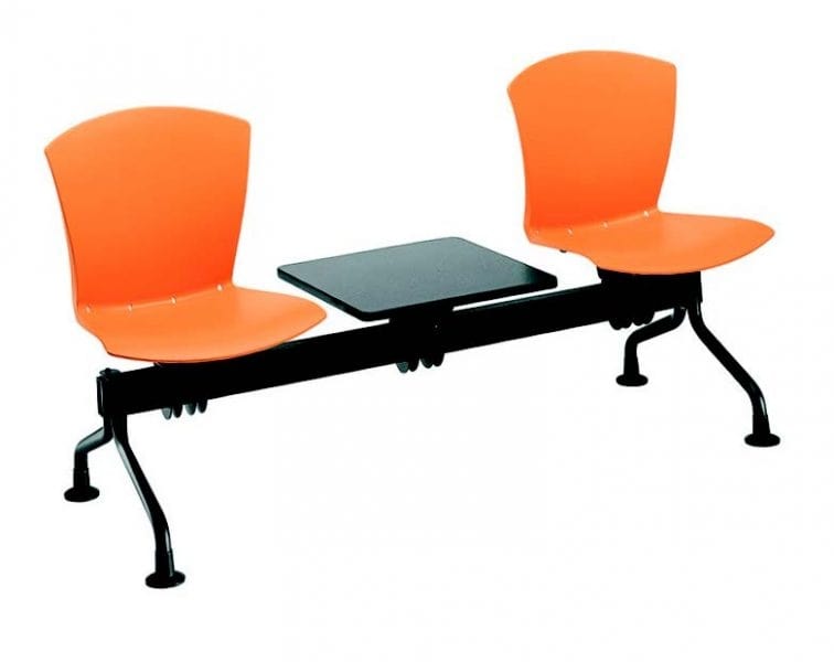 Bank mit Metallrahmen und Polypropylenschale. Der Balken ist immer schwarz, die Beine sind bemalt, mit oder ohne Tisch. Der Preis bleibt unverändert. Erhältlich mit 2, 3, 4 oder 5 Sitzen.