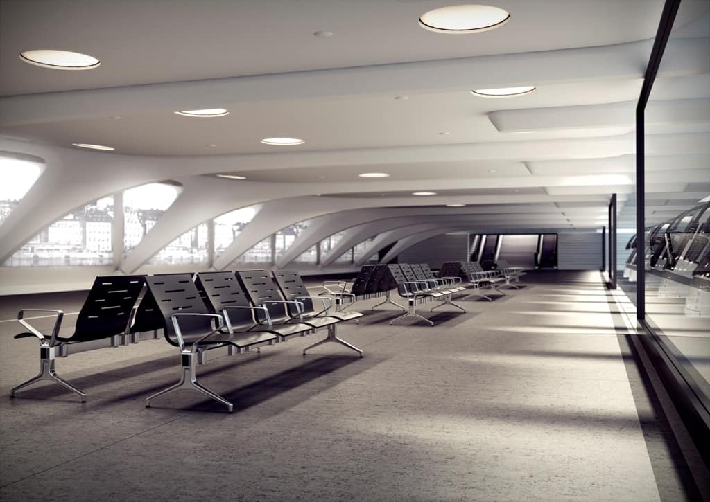 Stuhl auf dem Balken, aus Stahl und Polyurethan, für Wartezimmer