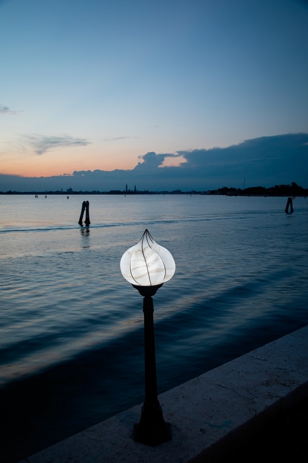 Handgefertigte Lampe aus mundgeblasenem Glas, hergestellt mit den Techniken der alten Meister des Muranoglases.