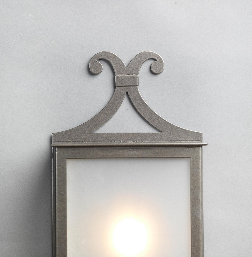 Halbe Laterne aus Eisen mit zurückgezogener Verzierung. Verzinkt und pulverbeschichtet.