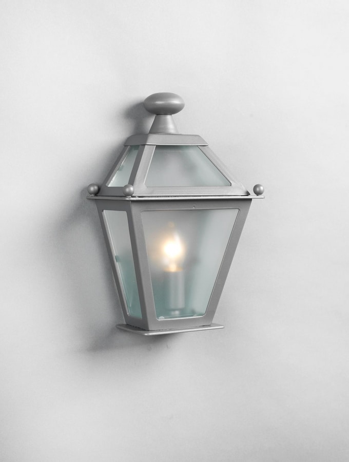 Halbe Laterne aus Eisen mit verzinktem und pulverbeschichtetem Glas, mod. einfach