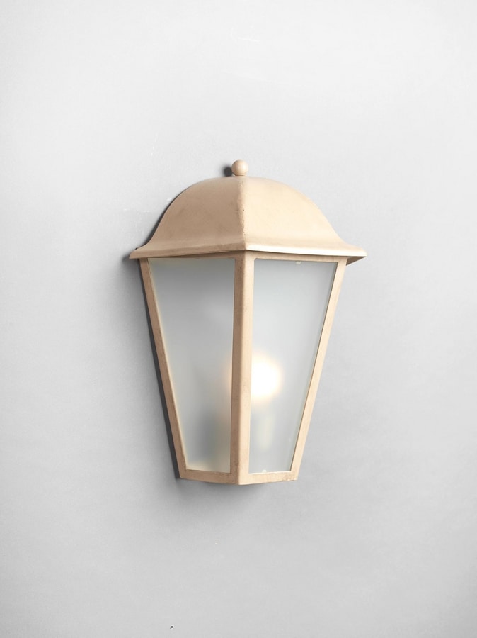 Wandlaterne aus Eisen mit transparentem, großem, verzinktem und pulverbeschichtetem Glas