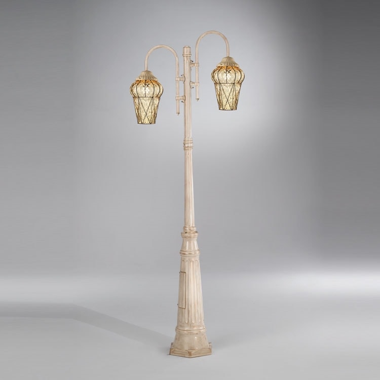 Klassischer Laternenpfahl mit mundgeblasenen Glasdiffusoren mit den Techniken der alten Murano-Glasmeister.