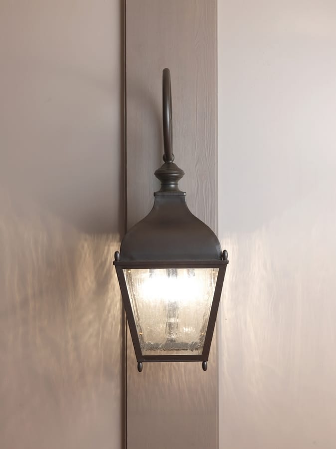 Eisenlaterne mit dekorativem Arm und Gläsern, verzinkt und pulverbeschichtet