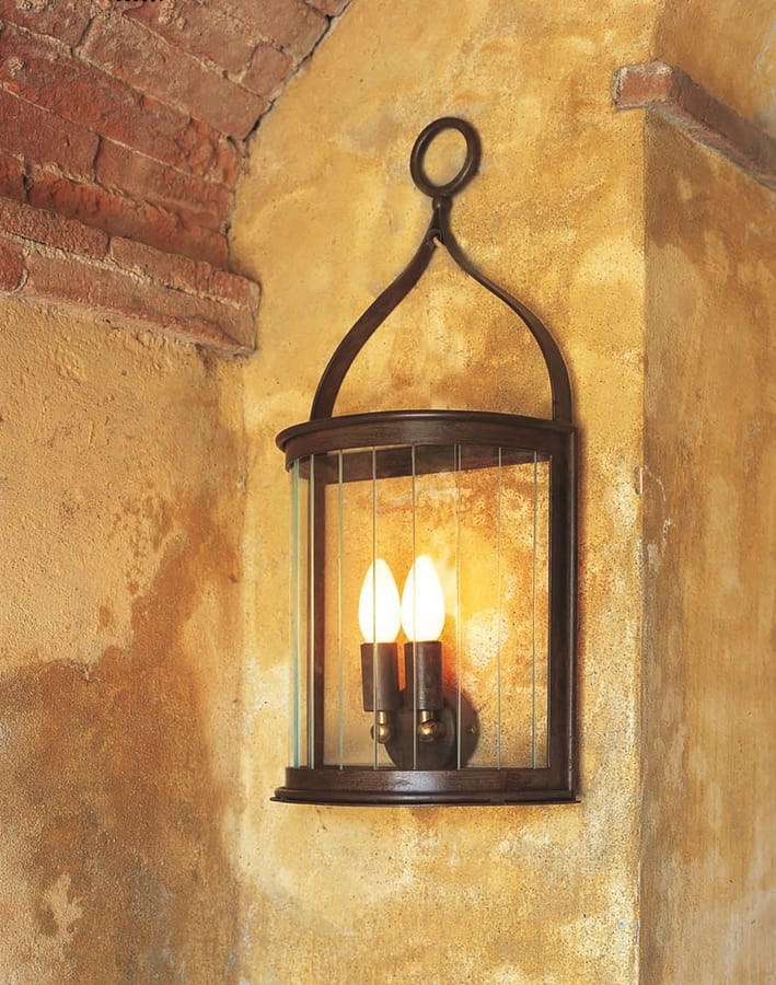 Wandleuchte aus Eisen mit transparenten Streifengläsern, verzinkt und pulverbeschichtet.