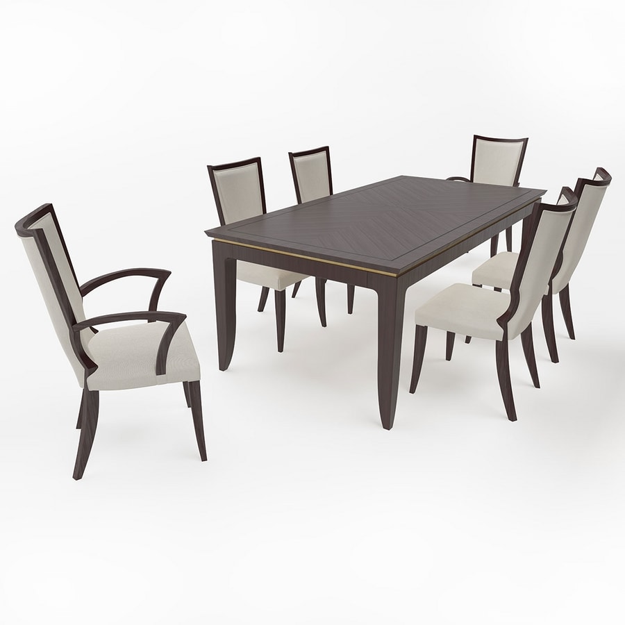Ausziehbarer Tisch mit mittleren Verlängerungen. Platte und Verlängerungen in Eichenfurnier.