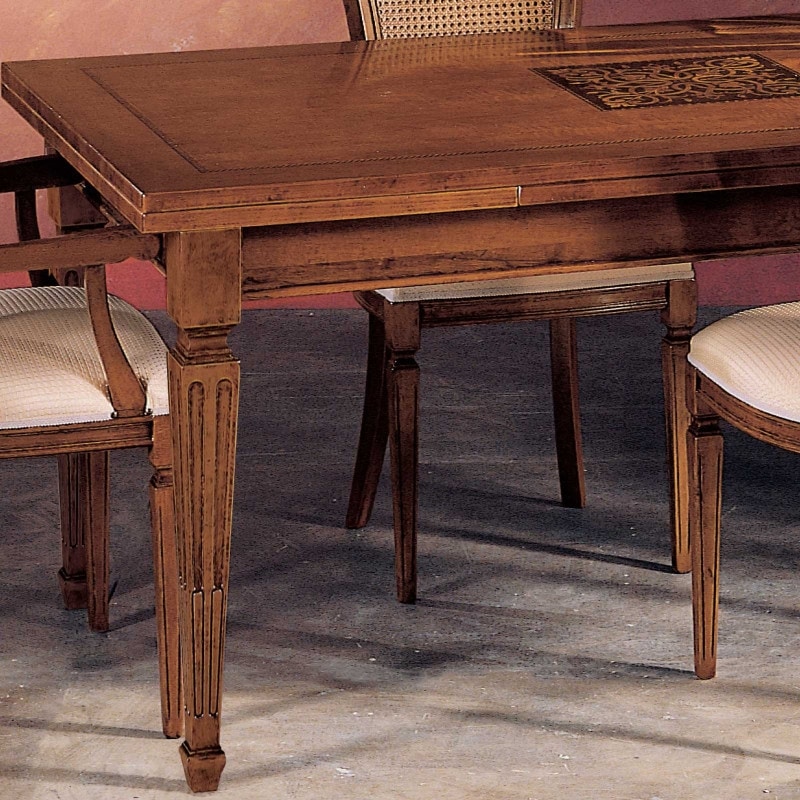 Preise anfordern Ähnliche ProdukteAusziehbarer rechteckiger Tisch mit ausziehbaren Seitenverlängerungen, auch „Pull“-Öffnung genannt. Mit Walnussholz furniert und mit floralen Motiven auf einer Tischlerplatte eingelegt, Beine aus massivem Buchenholz.