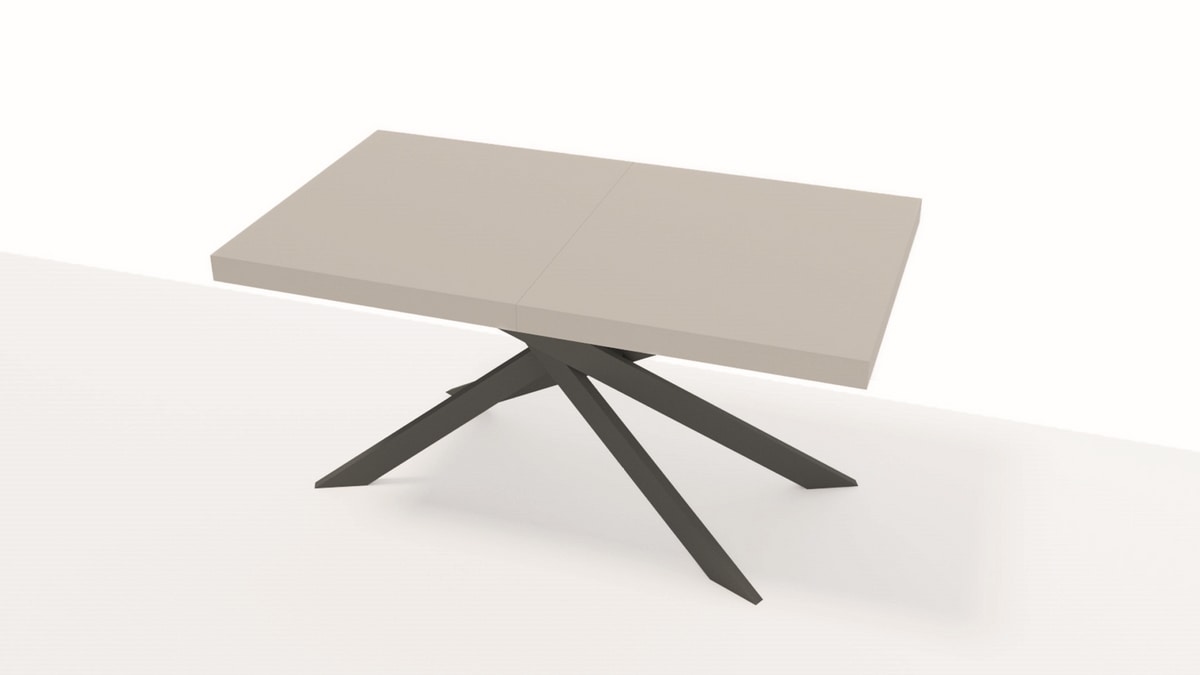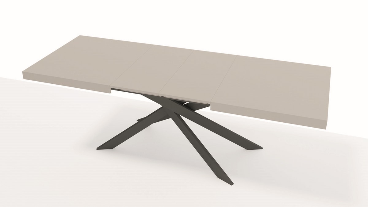 Die alltägliche Geselligkeit entfaltet sich auf einer hellen, leuchtenden und fühlbaren Harzplatte, die sich dank des klappbaren Verlängerungssystems leicht öffnen lässt. Der steingrau lackierte Metallfuß sorgt für Stabilität und Leichtigkeit. X1 vereint Funktionalität und Eleganz und wird zum visuellen Anker des Wohnraums.