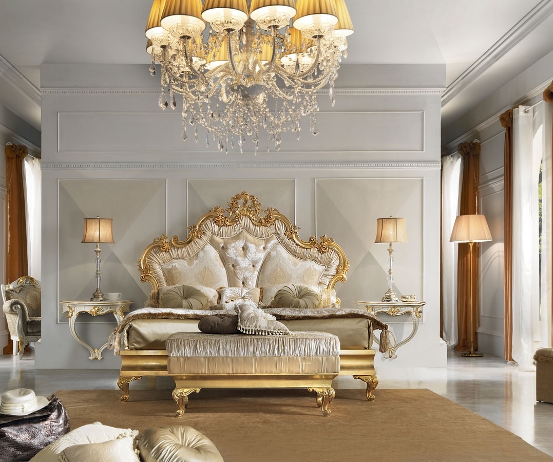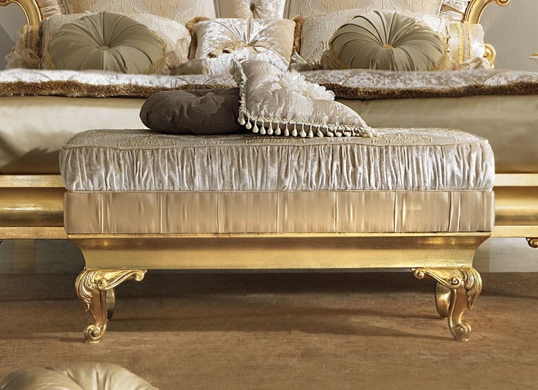 Zweisitzer-Bank aus Holz, komplett aus Blattgold, Damaststoff Samt.