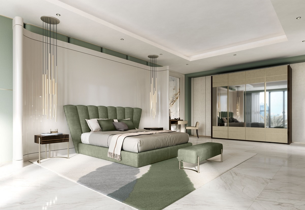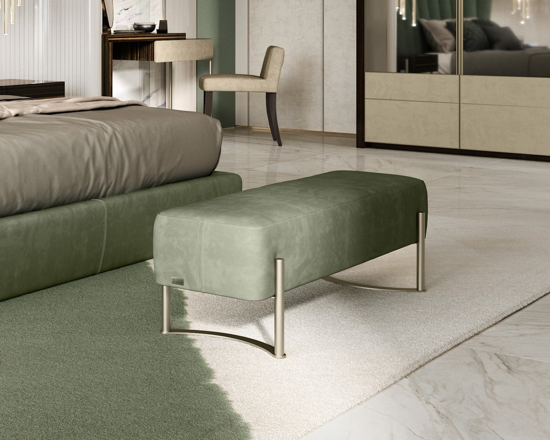 Gepolsterte Bank mit schlanker und geschwungener Form