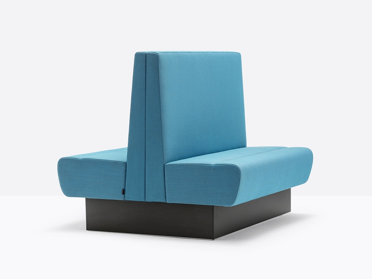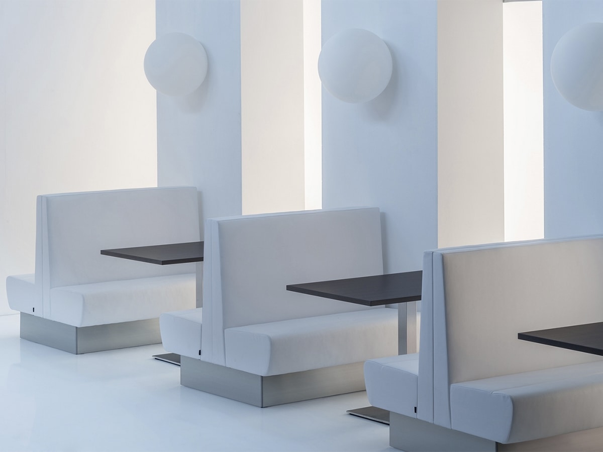 Das lineare Modul mit einer Länge von 100 oder 130 cm verfügt über einen Sitz und eine Rückenlehne, die vollständig mit Polyurethanschaum gepolstert sind und so umhüllenden Komfort und einwandfreien Halt bieten. Die in verschiedenen Ausführungen erhältliche Polsterung kann glatt oder mit eleganten horizontalen oder vertikalen Nähten verziert sein und so für stilvolle Details und Raffinesse sorgen.