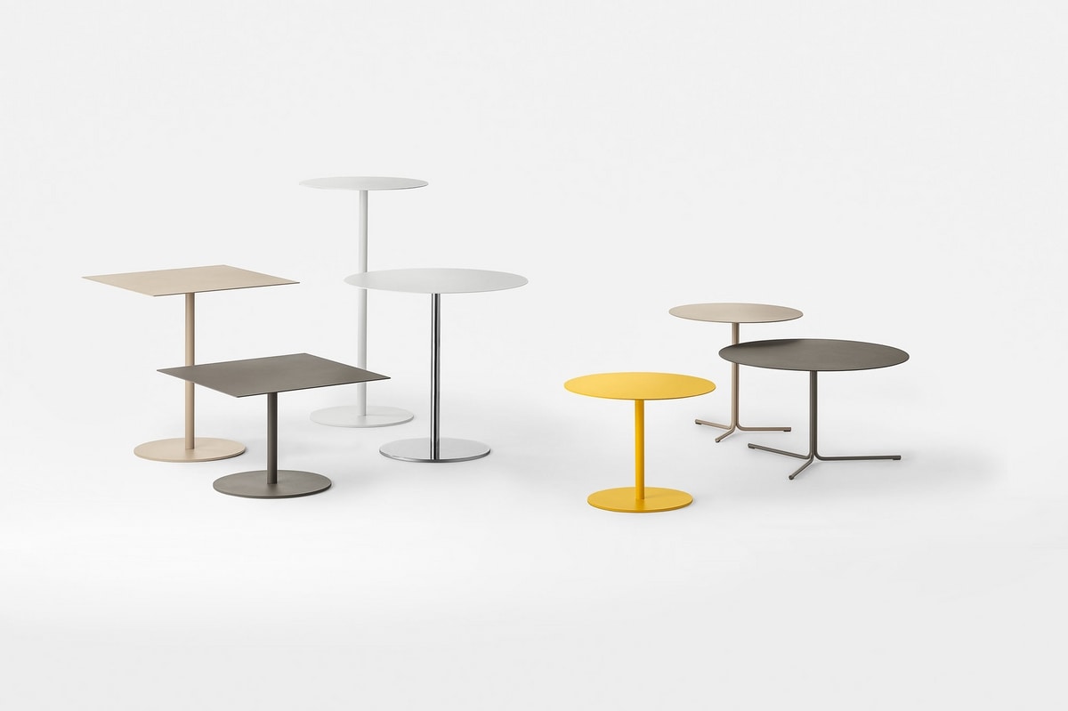 Serie von Tischen rund oder quadratisch.