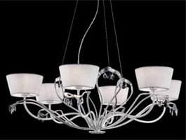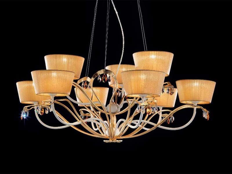 Kronleuchter mit Metallrahmen mit weiß lackierten und Gold / Silber-Blatt fertig, ganz in Handarbeit gefertigt. Diffusoren in Organza und Kristalltropfen Sw.