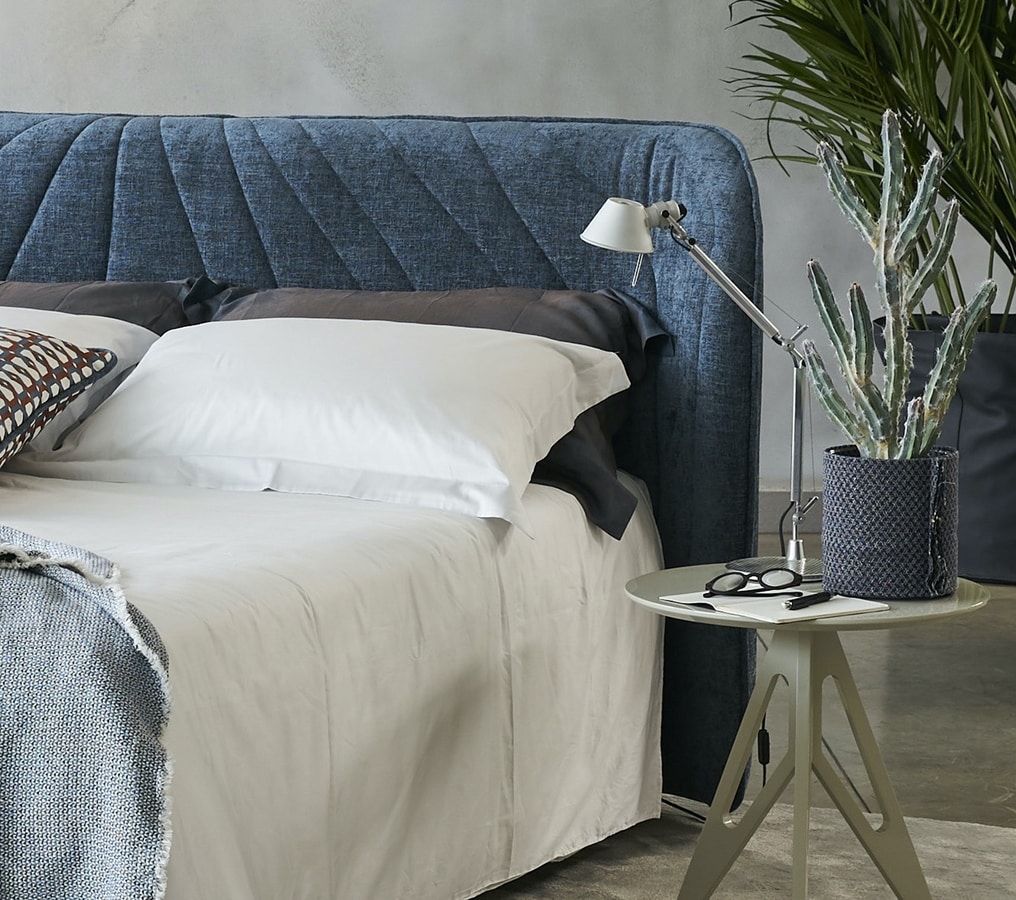 Ein gepolstertes Bett mit einem gesteppten, gebogenen Kopfteil. Victoria passt mit seinen Proportionen in die modernen und zeitgenössischen Umgebungen. Die Füße sind mit Stoff bezogen und sind auch in verschiedenen Holz- und Metalloberflächen erhältlich. Starrer Lattenrost mit darunter befindlichem Behälter „Komodo”, der durch seine praktische Mechanik den Lattenrost und die Matratze anhebt, um das Bettenmachen zu vereinfachen. Victoria kann für erleichterte Lieferung komplett demontiert werden. Der Bezugstoff in verschiedenen Farben ist ebenfalls komplett abziehbar und gemäß der Anweisung waschbar.