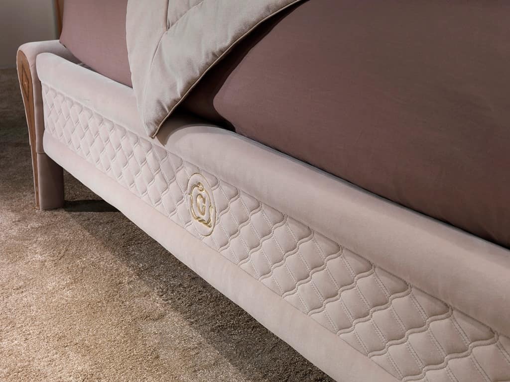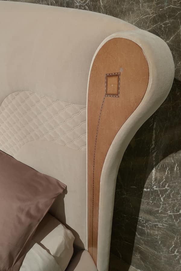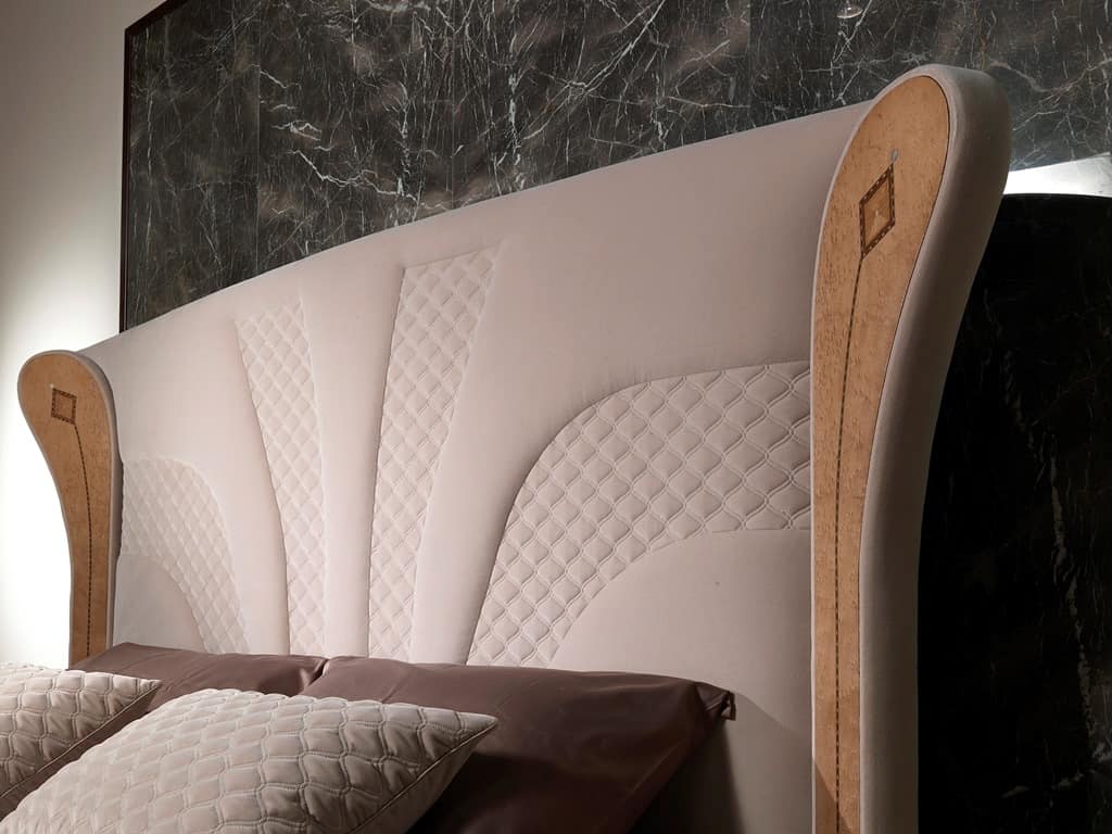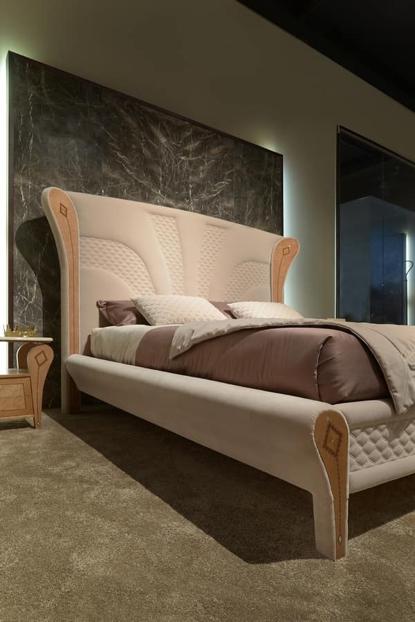 Luxuriöses Bett mit eingelegten Holzdekorationen