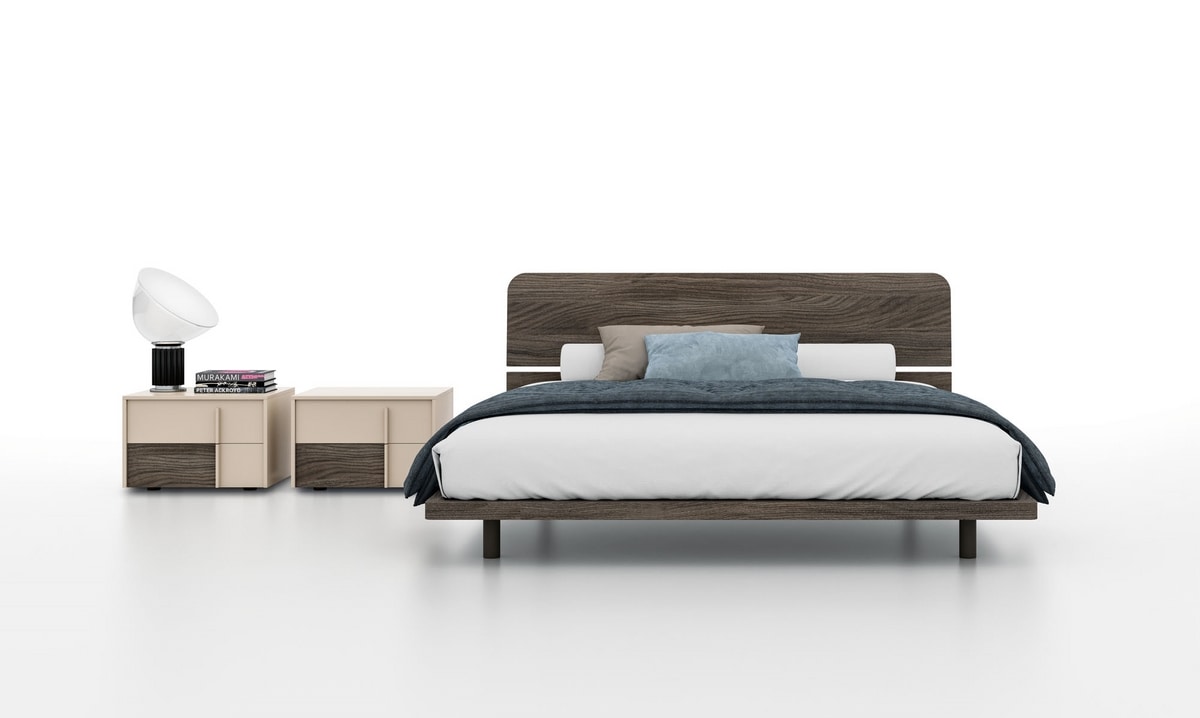 Doppelbett mit Kopfteil. Materic Dark Elm Struktur.