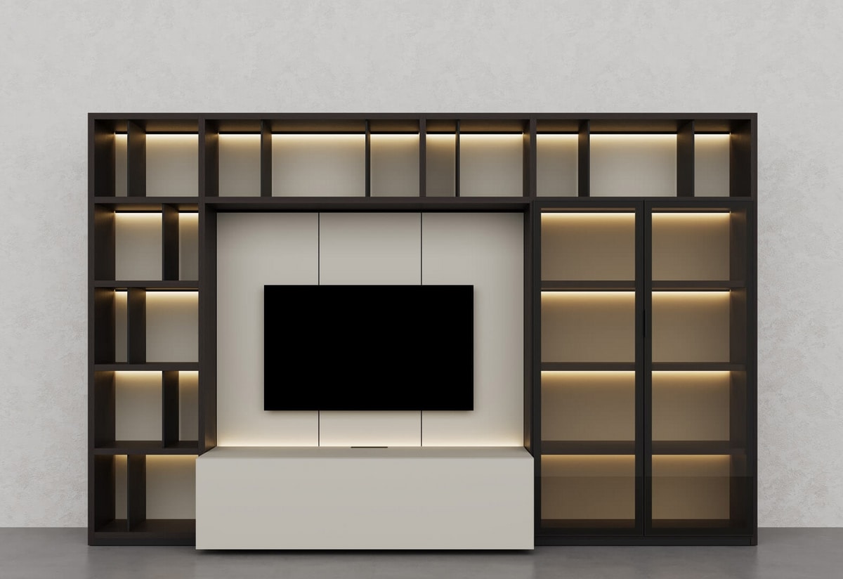 Modulare Möbel für Wohnzimmer, mit LED-Leuchten