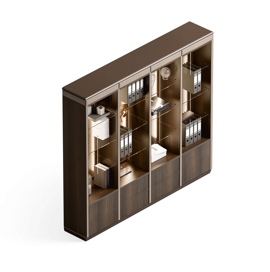 Regale: 6/10 mm dickes Glas oder in lackiertem Holz oder einer furnierten Dicke 25/35 mm.