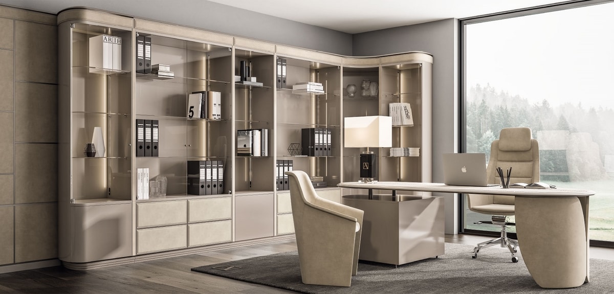 Schubladen: Holz. Fronten im Wesentlichen oder lackiert mit der Möglichkeit von Leder oder Stoffbedeckung. Innen Holz mit Mikrofaser bedeckt und mit einem Push-Pull-System geöffnet.