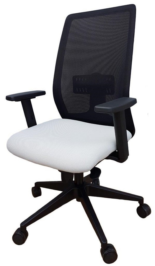 Bürostuhl mit schwarzer oder grauer Nylonstruktur, Multiblock-Mechanismus mit 4 Verriegelungspositionen Intensitätsregler, Sitzgleiter, schwarze oder graue Netzrückenlehne, verstellbare Lordosenstütze, verstellbare Armlehnen, anatomischer Sitz, mit Stoff oder Kunstleder in verschiedenen Farben gepolstert.