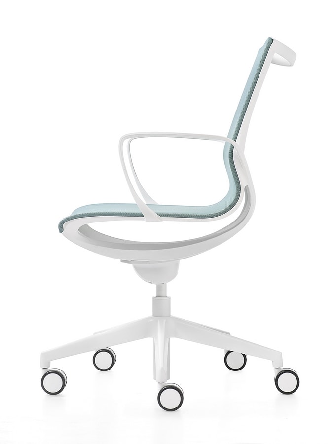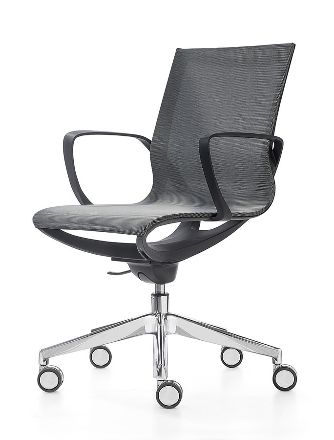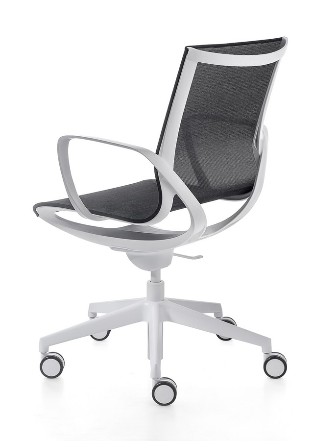 Büro- und Besucherstuhl mit Struktur aus glasfaserverstärktem Polypropylen weiÐ oder schwarz, mit atmungsaktiver Netzbespannung in den Farben schwarz, beige, grau, grün. Die Ausführung PLUS ist mit gepolstertem und abnehmbaren Sitz- und Rückenkissen.
