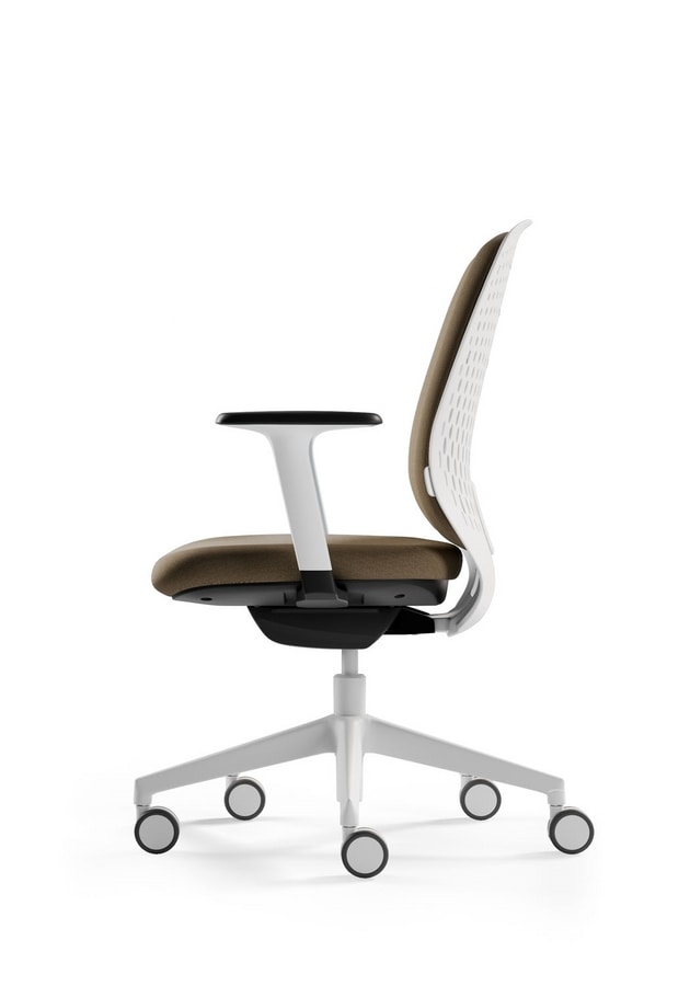 Einstellungen und Konfigurationen für eine perfekte Sitzposition. Die Stühle KEY SMART passen sich jedem Bedarf an und erreichen ihre maximale Leistungen in der Version Key Smart Advanced, die mit einer in dem Sitz integrierten und selbsteinstellenden Synchronmechanik und Sitztiefenverstellung, sowie verstellbaren Armlehnen ausgestattet ist.