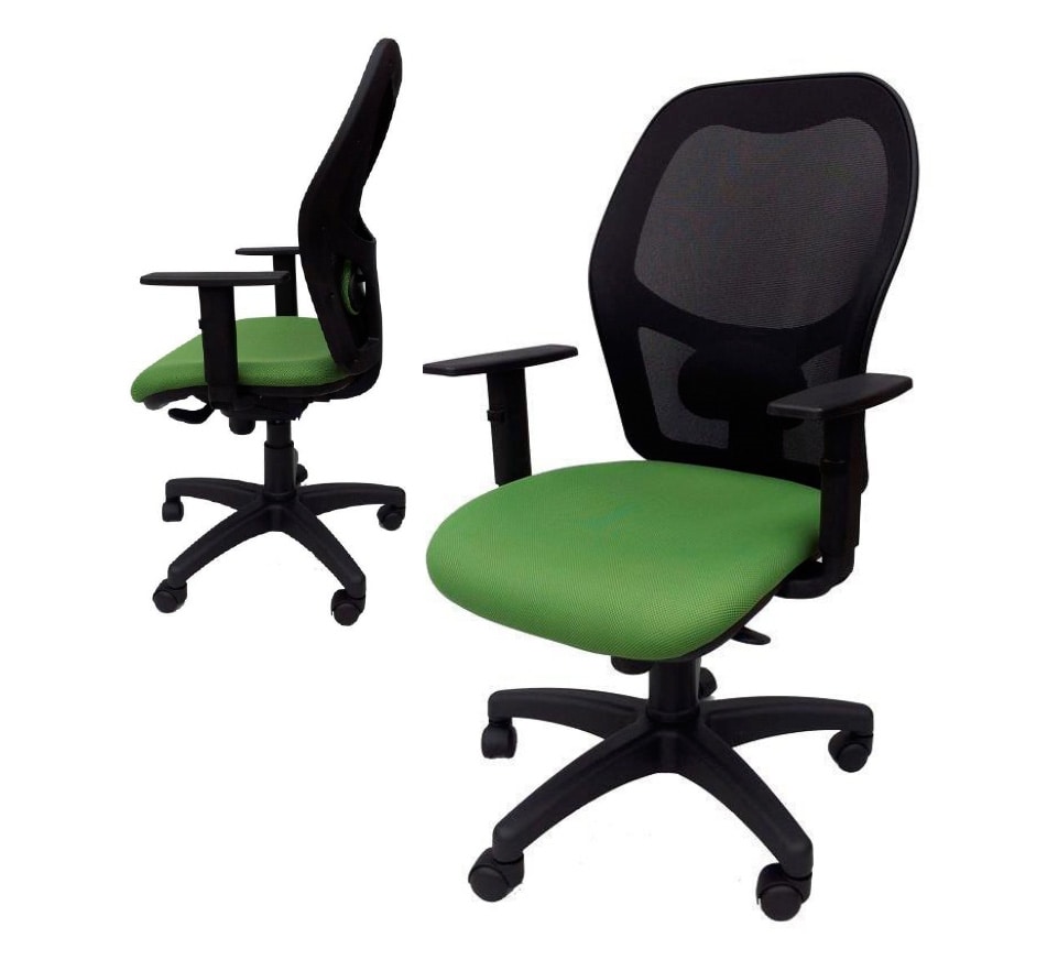 Bürostuhl mit schwarzer Nylonstruktur, Multiblock-Mechanismus mit 4 Verriegelungspositionen Intensitätsregler, schwarze, weiße oder graue Netzrückenlehne, verstellbare Lordosenstütze, verstellbare Armlehnen, anatomischer Sitz, mit Stoff oder Kunstleder in verschiedenen Farben gepolstert.