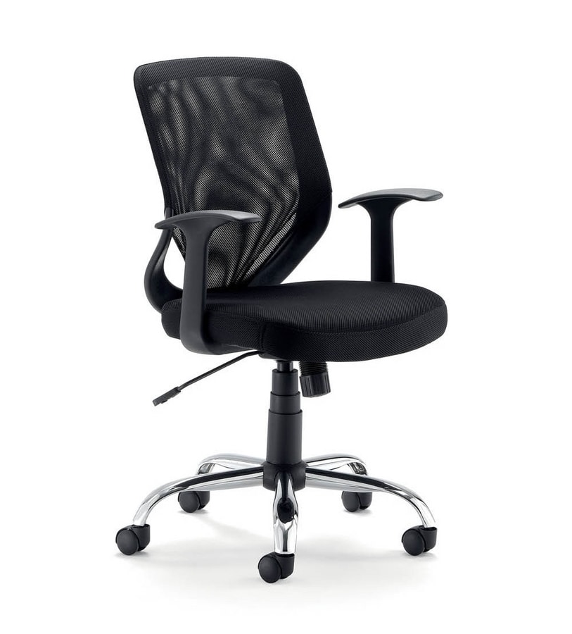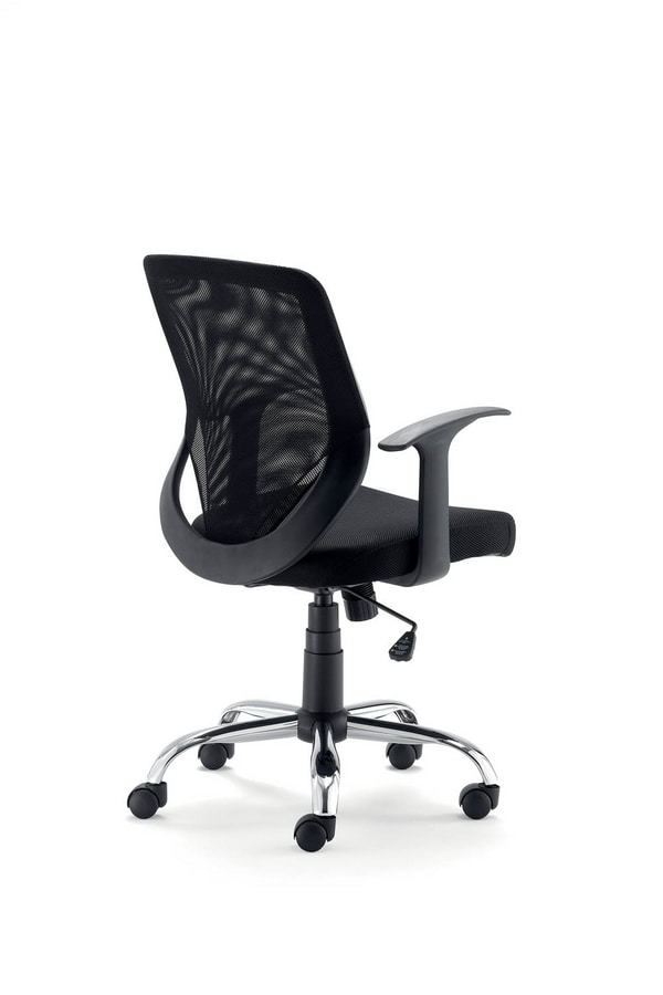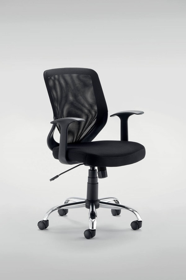 Lehrstuhl für Arbeitsamt. Standard schwarze Rollen d.50. Chrome Base d.640. Gasheber mit Deckel. Monoblock-Kippmechanismus mit Spannungsregelung. Feste Arme aus schwarzem Polypropylen. Sperrholz-Innensitz mit Polyurethanschaum. Polsterung aus schwarzem Stoff und Kunstleder. Verstärkter Nylonrücken. Schwarzer Netzbezug.