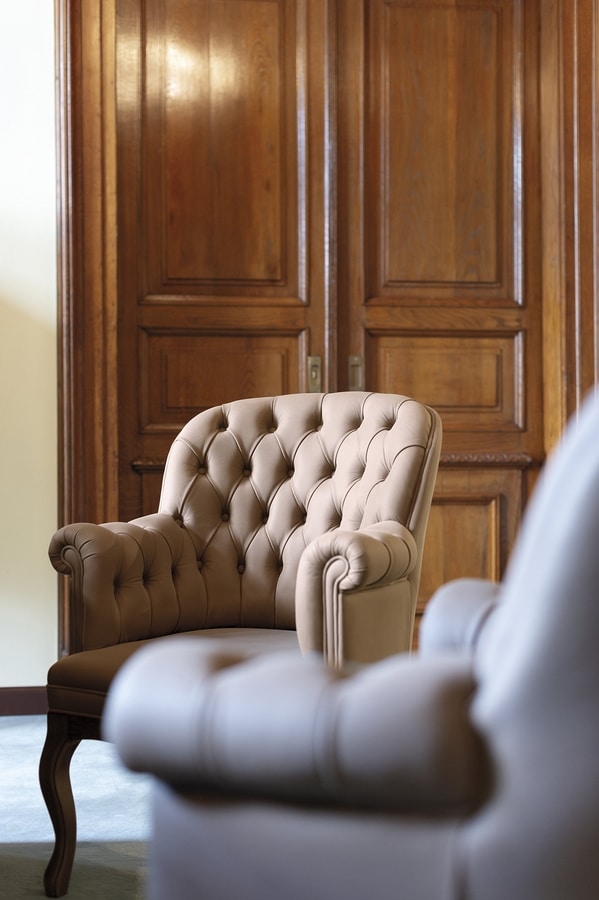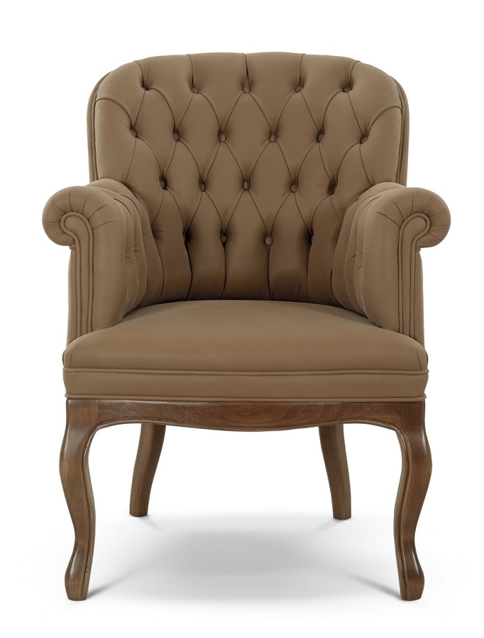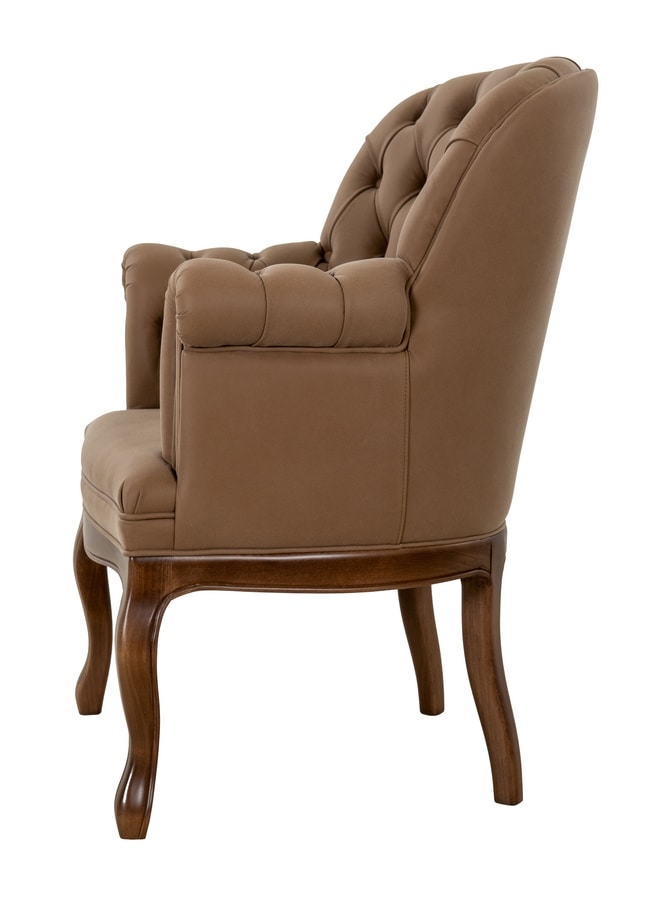 Eleganz und Komfort kommen in diesem Besucheressalkrain zusammen und vollgepolstert in Leder mit einem aus Walnuss gefärbten Holzrahmen. Die büschelige Rückenlehne und die geformten Armlehne verleihen zeitloser Charme und formen eine klassische und einladende Ästhetik.