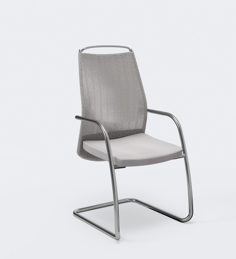 Gekennzeichnet durch die verchromten Stahl Veredelung der Rückenlehne, ist es in zahlreichen Varianten. Die spezielle elastische Mesh Gewebe garantiert Transparenz und Komfort. Der Sitz ist mit einem innovativen Federung vorgesehen - heute auf Nachfrage über das gesamte Spektrum - das bietet Qualität auch bei langen Arbeitszeiten. Es ist der ideale Platz für ein Arbeitsumfeld, in dem die Aufmerksamkeit auf Eleganz und formale Strenge wird wichtig.