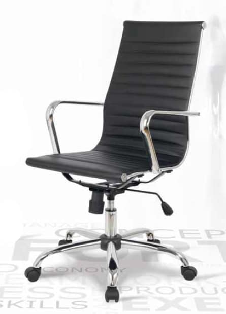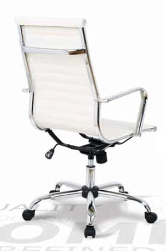 Bürostuhl mit Lederpolsterung. Gepolsterter Sitz und Rückenlehne. Ausgestattet mit Metallarmlehnen, die in die Struktur des Sitzes integriert sind. 5-Speichen-Basis auf Rollen. In der Höhe verstellbar.