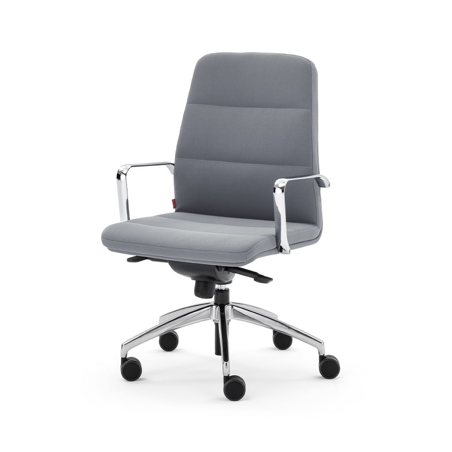 Erleben Sie Luxus und Eleganz mit dem Chefsessel Venus P, einer perfekten Mischung aus klassischen Formen und modernem Design. Das 5-Stern-Fußkreuz aus poliertem Aluminium sorgt für Stabilität und Eleganz, während Sitz und Rückenlehne mit hochwertigem Stoff, luxuriösem Kunstleder oder hochwertigem Rindsleder umhüllt sind und unschlagbaren Komfort bieten.