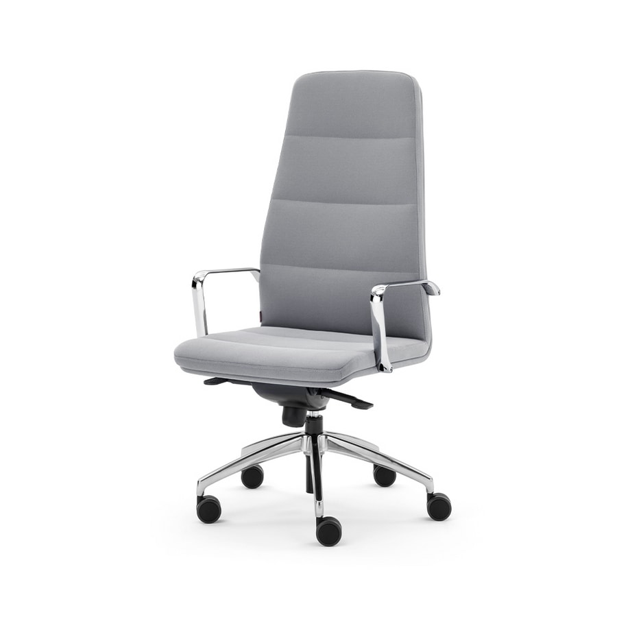 Preise anfordern Ähnliche ProdukteChefsessel mit einer Struktur aus glänzendem Aluminium mit 5 Speichen, Sitz und Rückenlehne mit Stoff, Öko-Leder oder Rindsleder bezogen und gepolstert. Feste Armlehnen.