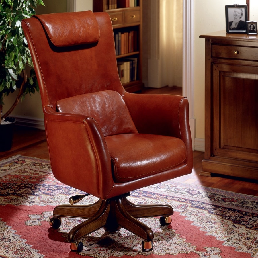 Preise anfordern Ähnliche ProdukteDieser Bürostuhl ist ideal für diejenigen, die maximalen Komfort suchen, wenn hochwertige Naturleder verwendet werden, Anilinfass gefärbt, Vollnarbe mit zweifarbigen Effektpigmenten, seidenmattes Aussehen.