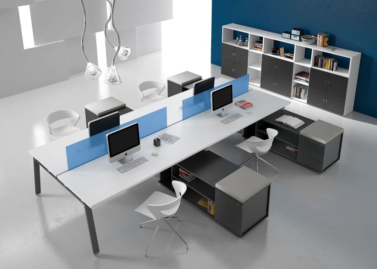 Die Mehrfach / Bank Workstations sind mit Rücken-an- Rücken und angrenzenden Desktops unterstützt , welche auch gemacht , bei den Kunden vor, von Zwischenmetallbeine(163 cm) , zurückweichenden Zwischenmetallbeine( 123 cm ) oder durch zentrale Melamin -Basen, eine Lösung bietet bequemen Platz für die Kabelführung.