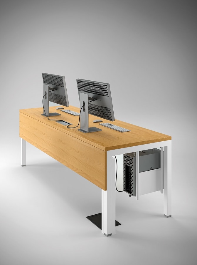 Jeder Tisch kann je nach Verwendung und Kontext mit einer Vielzahl von Zubehörteilen individuell gestaltet werden.