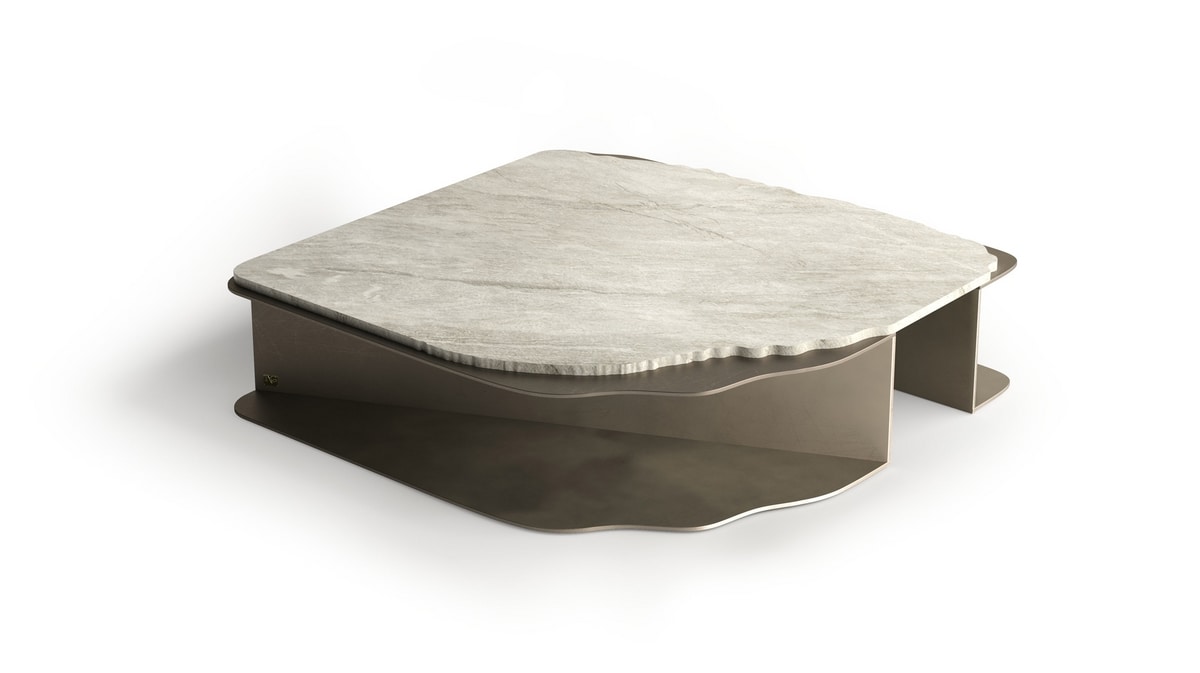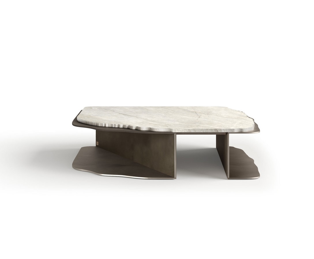 Preise anfordern Ähnliche ProdukteDer Dune-Couchtisch verfügt über eine von Natur aus inspirierte Form, die auf einer festen Metallbasis ruht, die in drei Oberflächen erhältlich ist. Die Oberseite in Quarzit oder Marmor verbessert die taktile Qualität der Oberflächen und kombiniert strukturelle Klarheit mit raffinierter Präsenz.