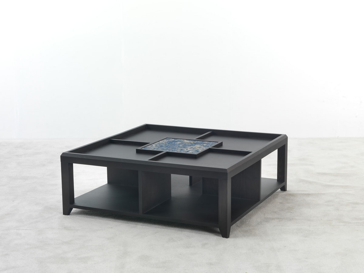 Quadratische Tische aus Holz und Sodalith