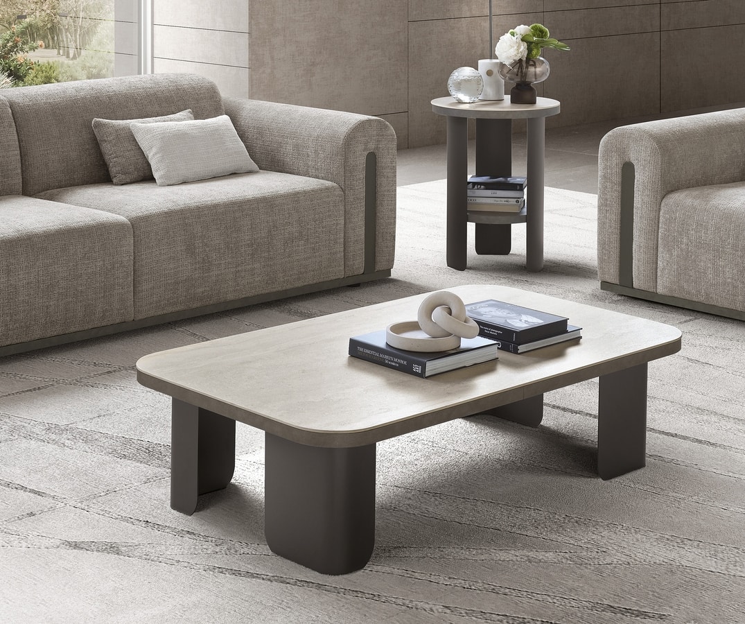 Couchtisch mit Travertino-Keramikplatte
