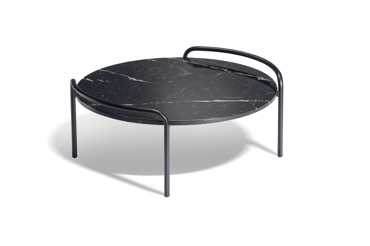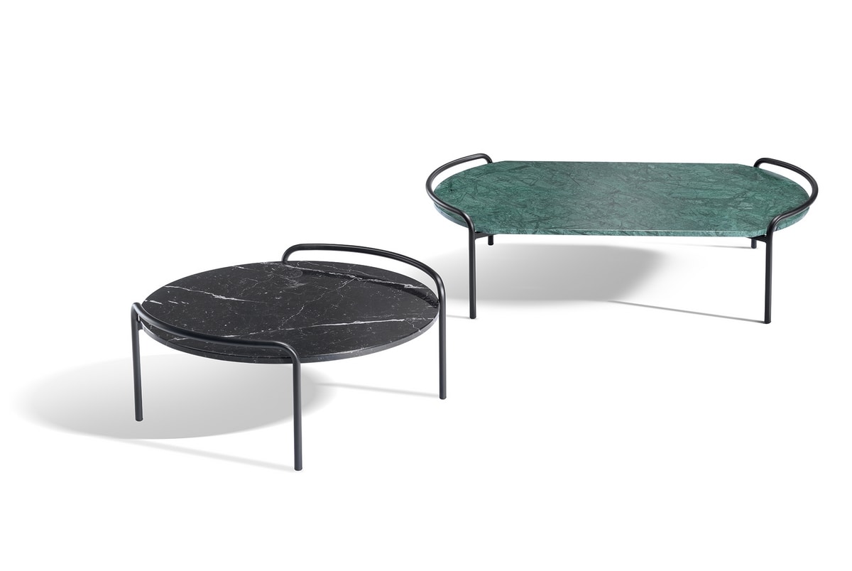 Beistelltisch aus Metall mit rechteckiger oder runder Marmorplatte