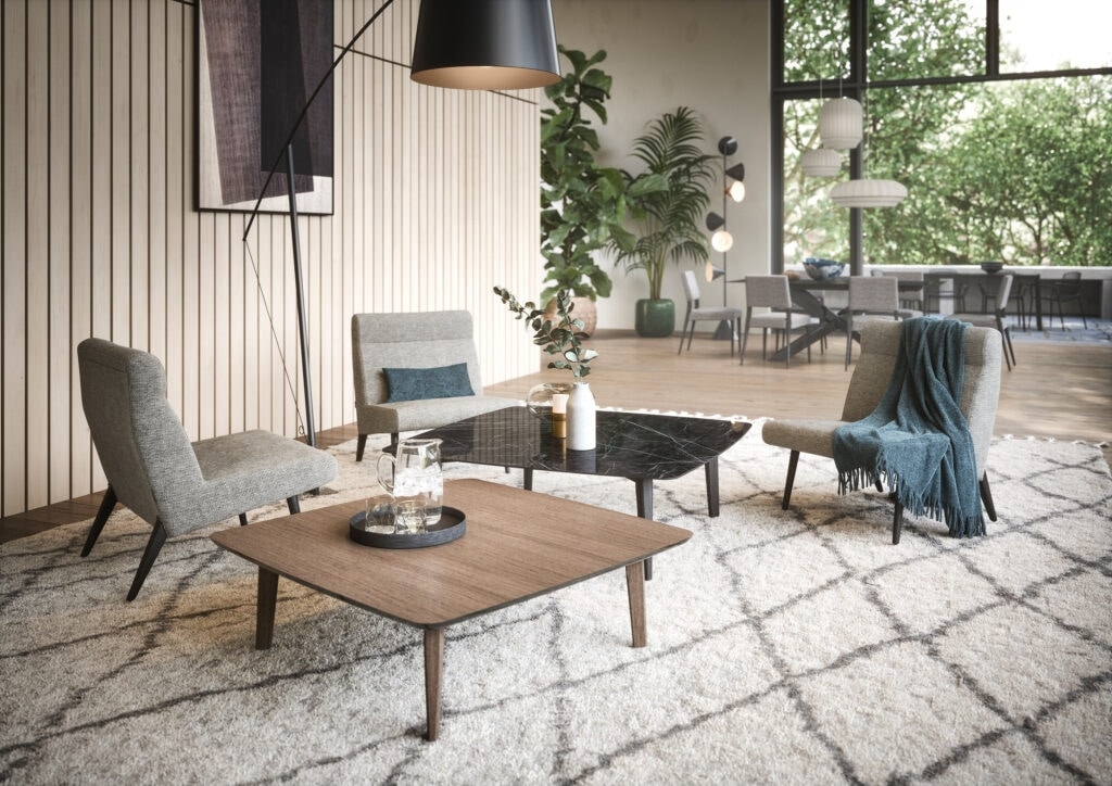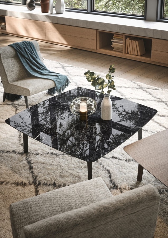 Couchtisch mit quadratischer Platte aus Holz, Fenix, HPL oder Keramik