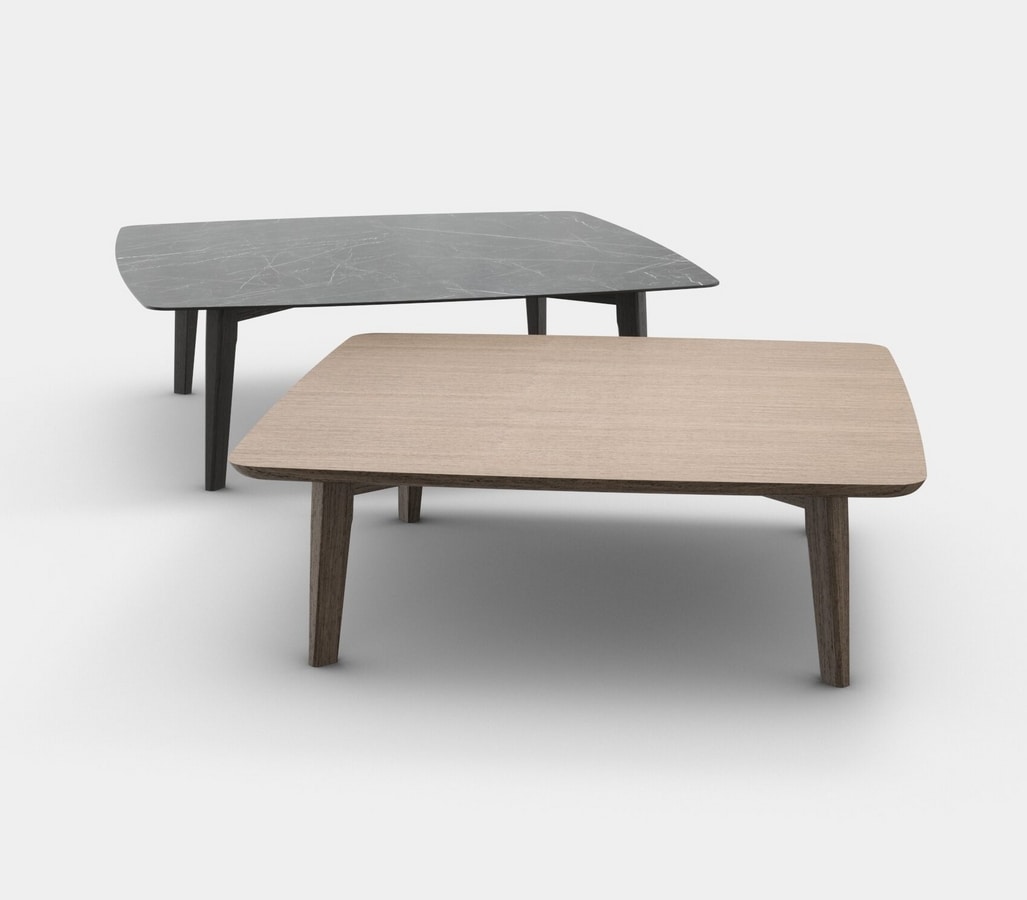 Die schlanke Figur von Prado ist auf eine Struktur aus Massivholz mit spitz zulaufenden Beinen und einer dünnen Platte mit dezentem Design ohne Kanten zurückzuführen. Die Oberseite ist in verschiedenen Materialien erhältlich.