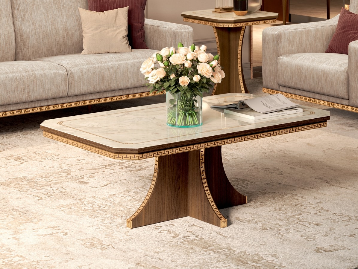 Couchtisch mit neoklassizistischem Geflecht, Platte aus Carrara-Marmor