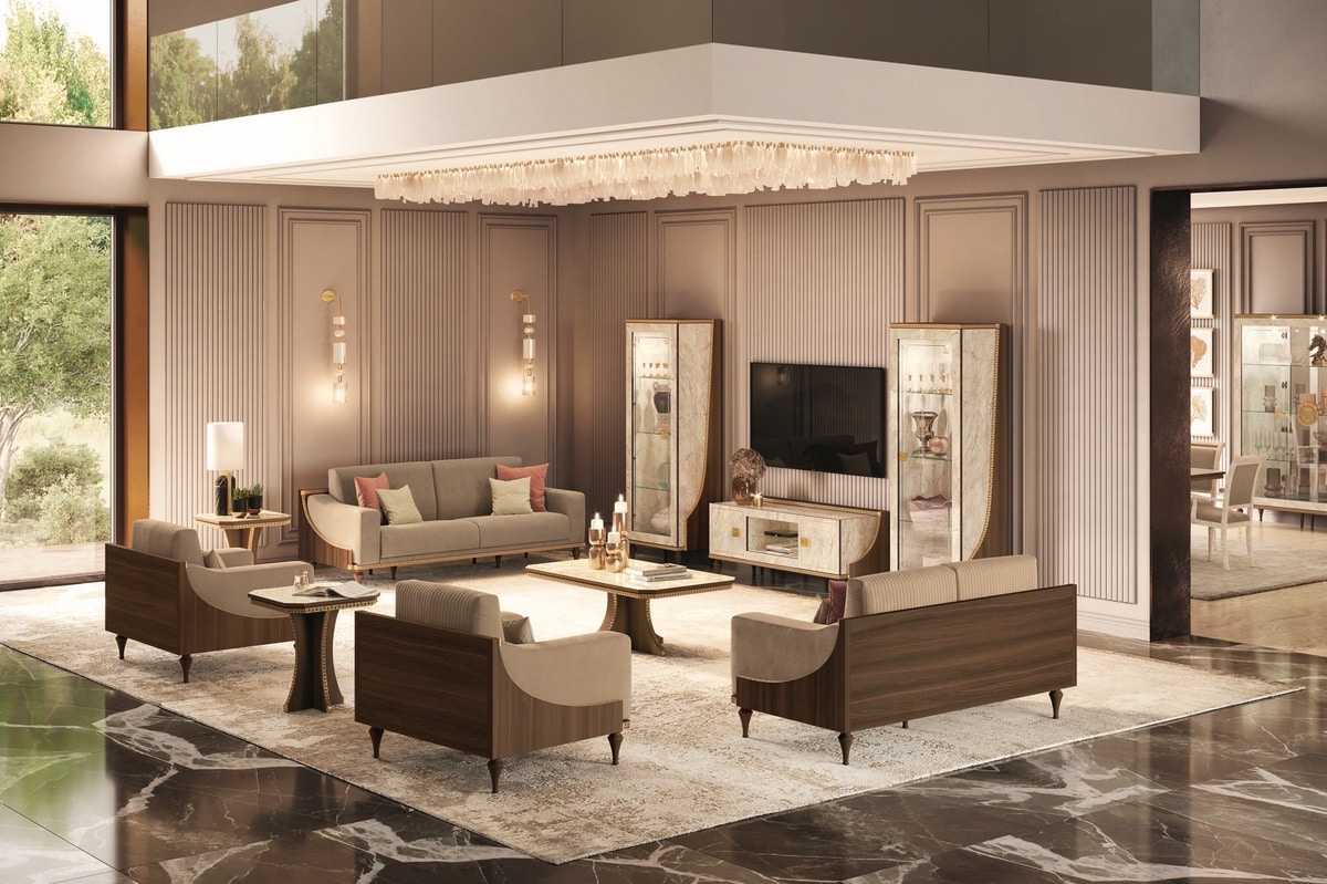 In der Romantica-Kollektion treffen typisch klassische Details aufeinander und verschmelzen mit klaren, geometrischen Formen, die an modernere Volumen erinnern. Jedes Element wird durch den eleganten Farbkontrast zwischen den Oberflächen Walnussholz und Carrara-Marmor hervorgehoben.