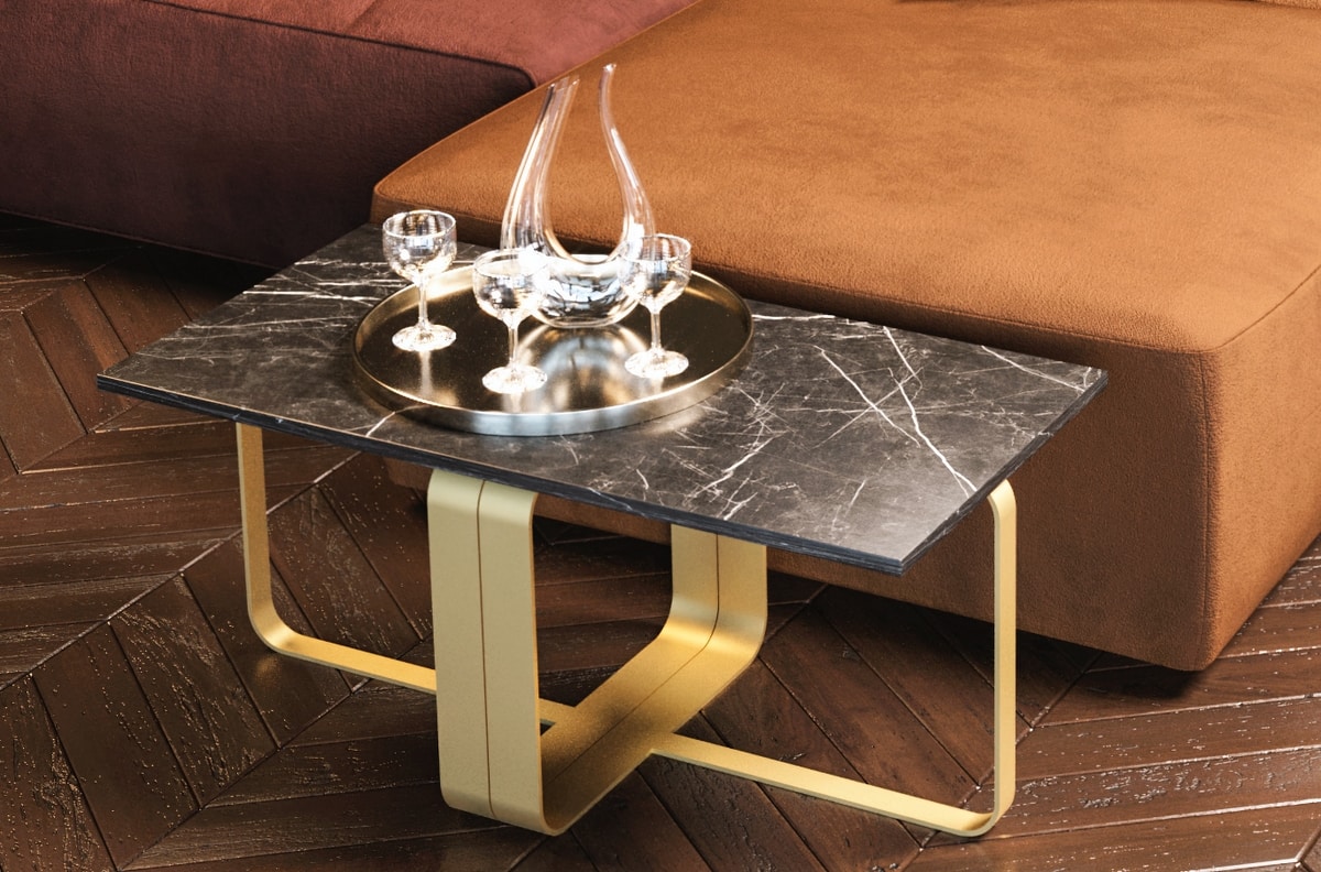 Preise anfordern Ähnliche ProdukteUyou Couchtisch mit mattschwarzem Metallfuß und Marmorplatte in Marquinia-Schwarz.