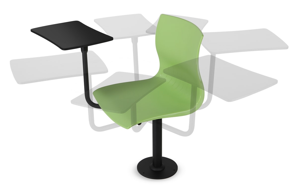 Untergestell aus lackiertem oder verchromtem Metall, stapelbar mit oder ohne Schlittenarme und 4 Beine, auch mit 4 Rollen, auch als Hockervarianten erhältlich. 5-Speichen-Versionen mit Rädern oder Füßen, Gaslift, Varianten auch mit Compact-Line-Oszillationsmechanismus und 5-Sterne-Hocker mit verstellbarer Fußstütze.