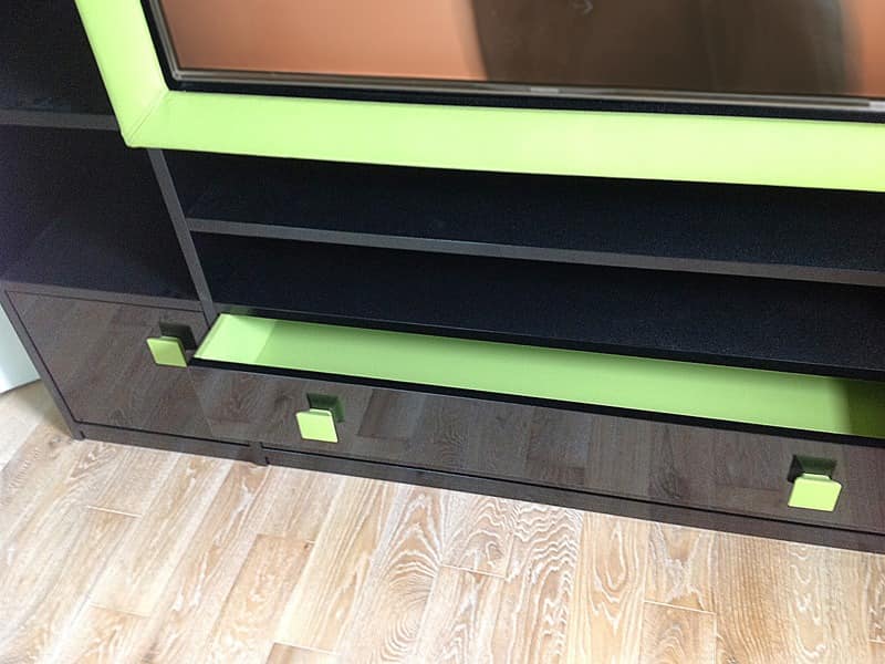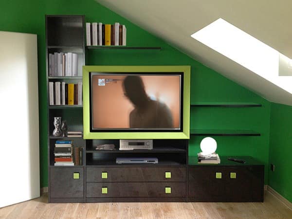Speichereinheit für das Wohnzimmer, Lederrahmen für TV